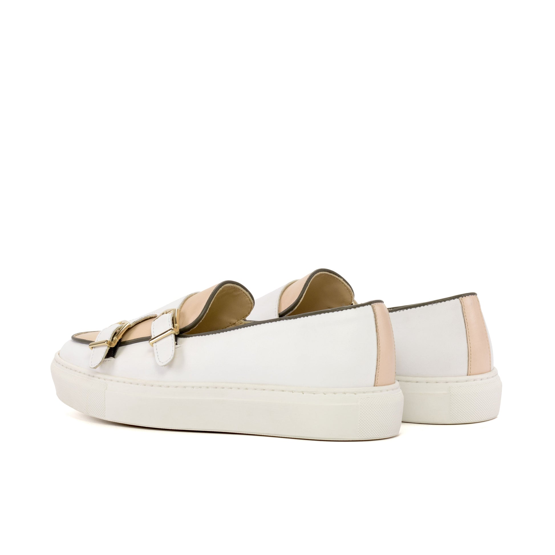 Classic belgian sneakers with a contrasting double monk strap, featuring a white / black cupsole for a casual look. They provide the looks of apron and double monk style at the same time.