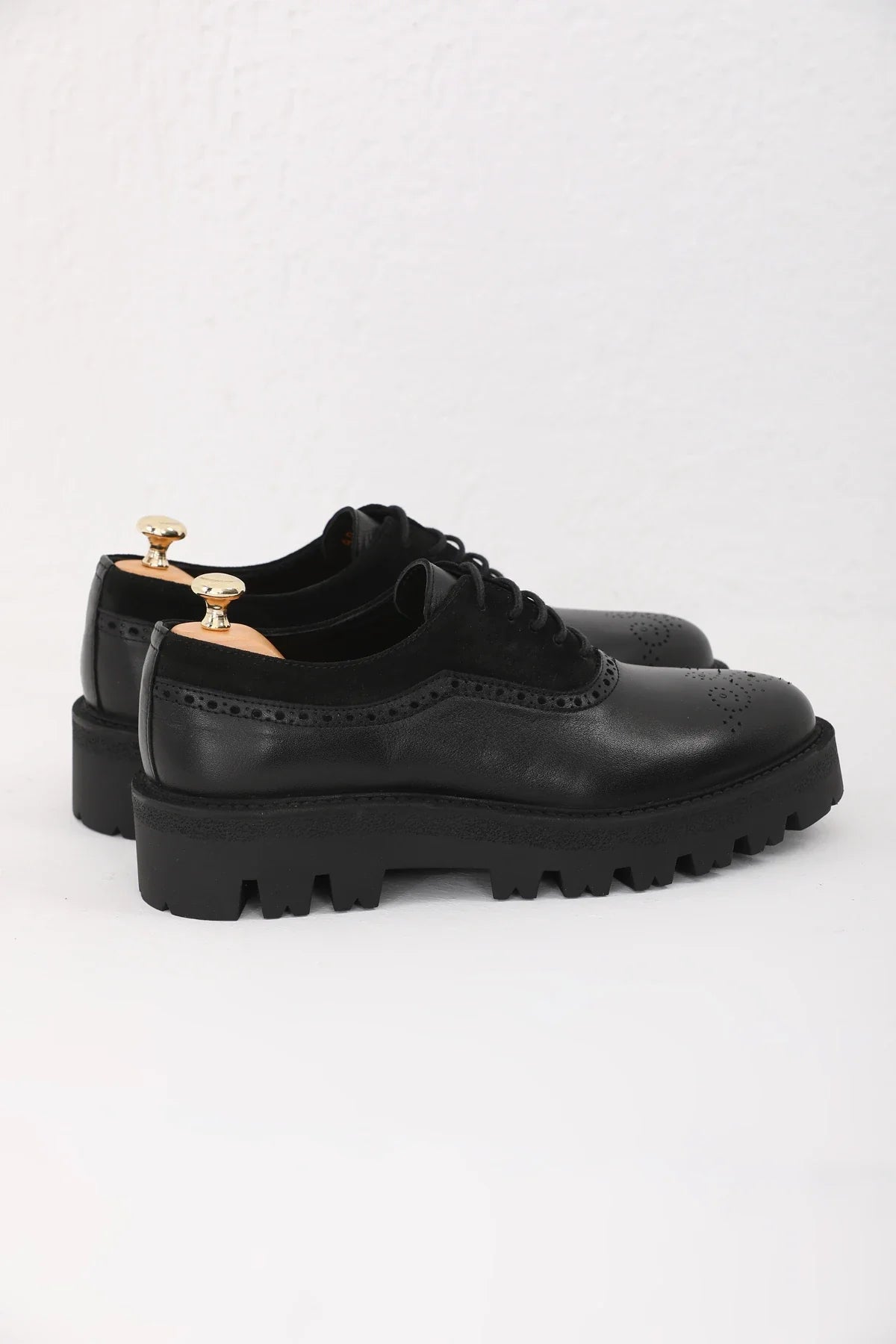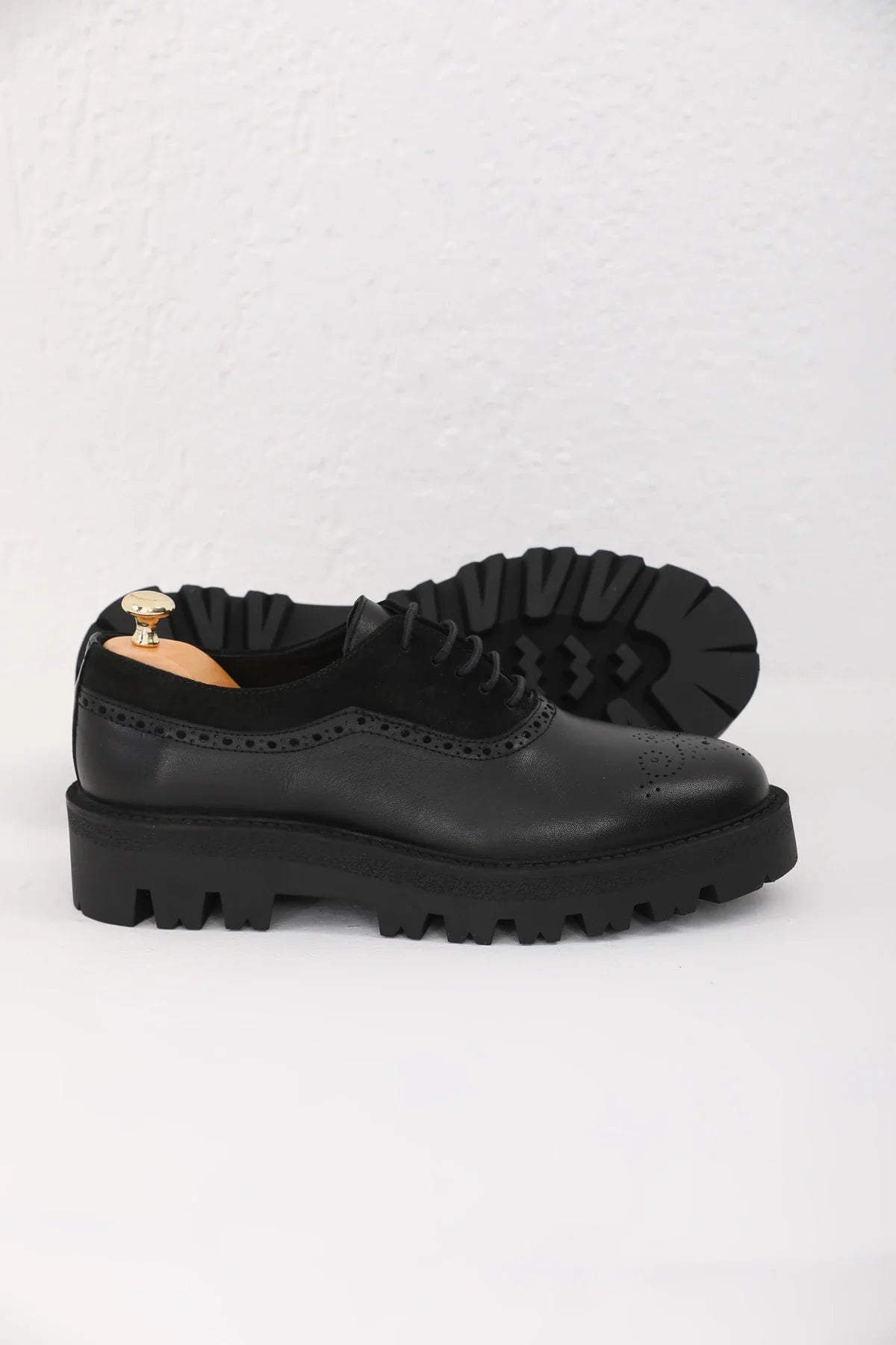 Black Suede And Plan Toe Brogue Chunky Shoes