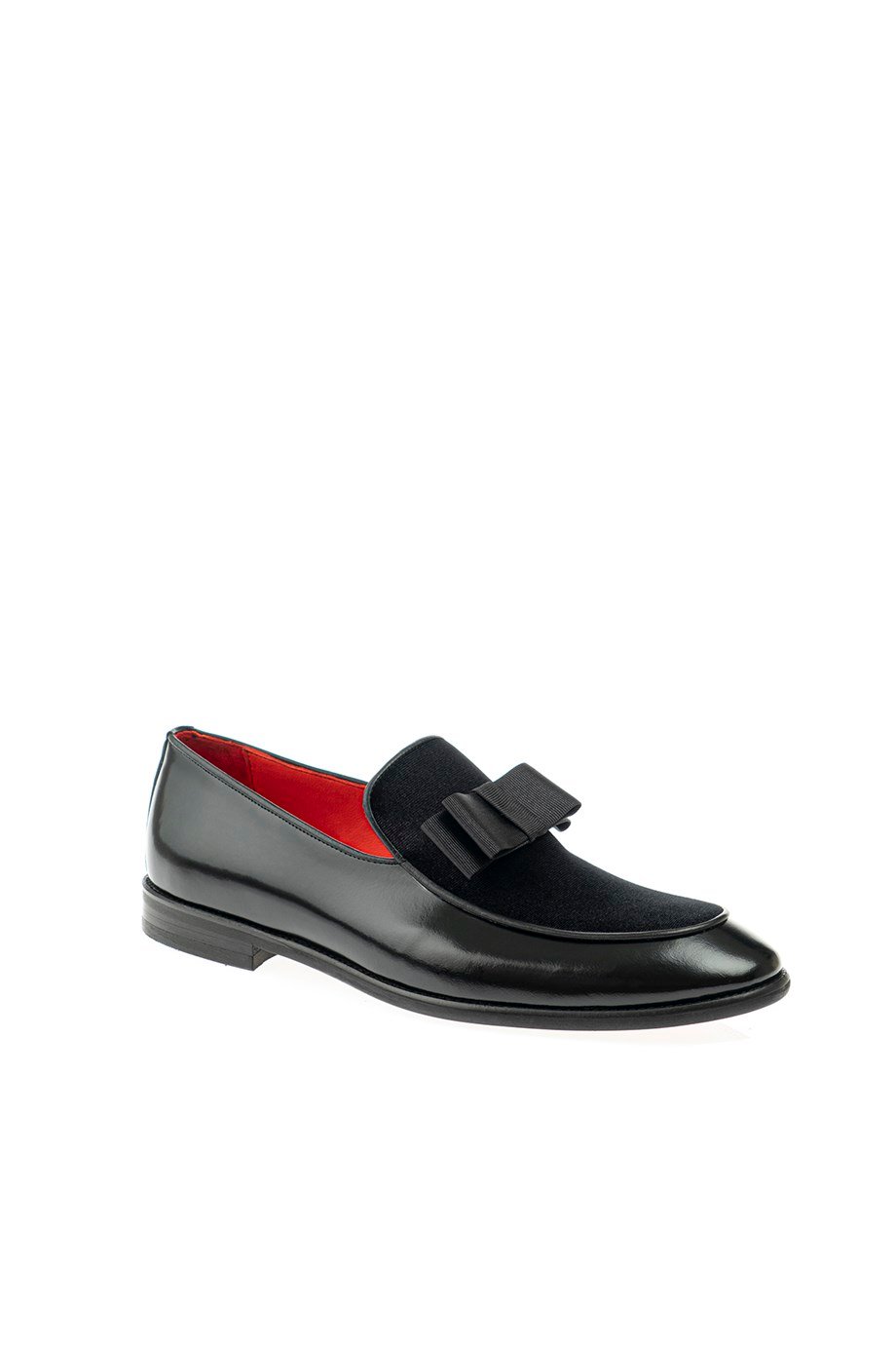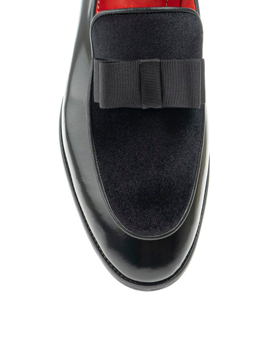Step 1: Slip on the laceless Black velvet bow Loafers.