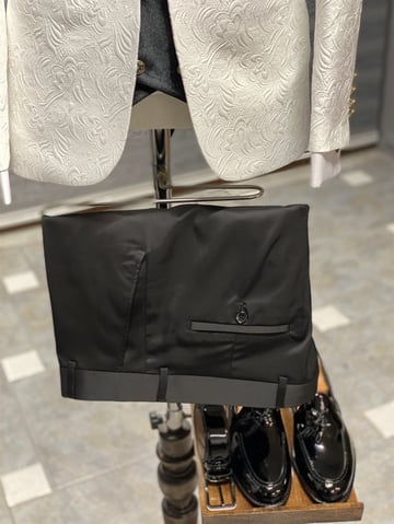 Black Velvet Collar and Double Button Detailed Special Design Wedding white Suit