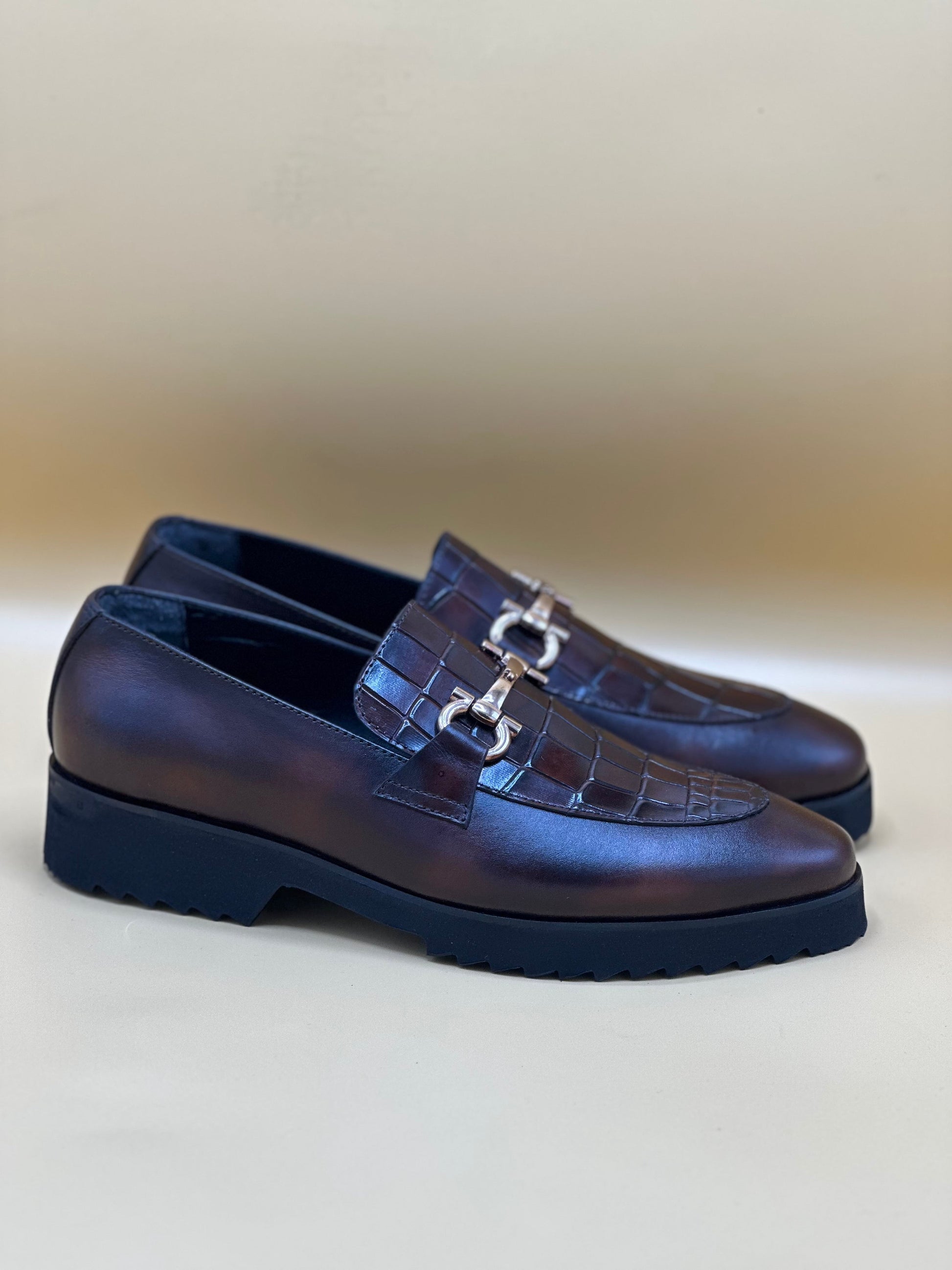 Discover the perfect blend of luxury and comfort with our Brown Shaded Vamp Croc featuring a striking golden buckle. These sophisticated shoes are designed for the discerning individual who values style and ease.