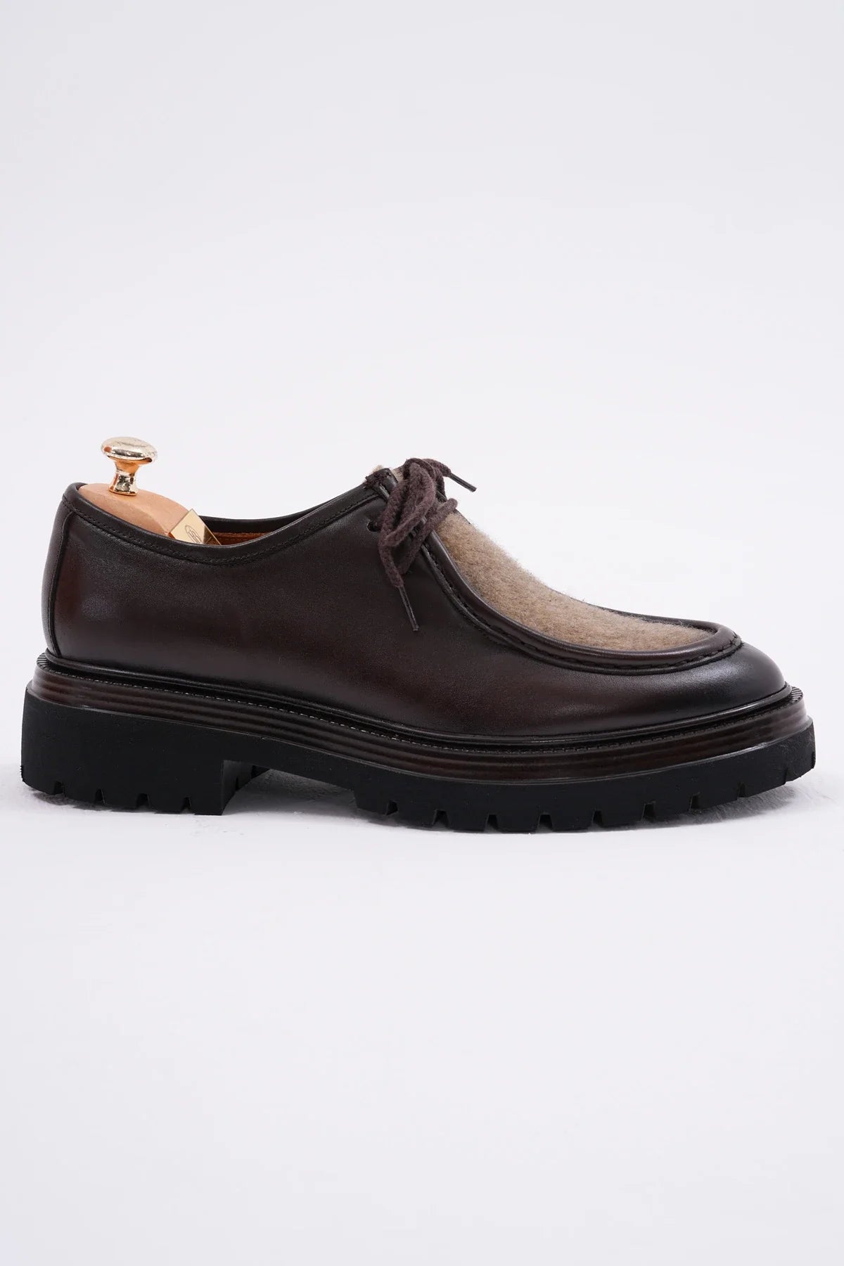 Brown Genuine Leather Felt Detailed Shoes