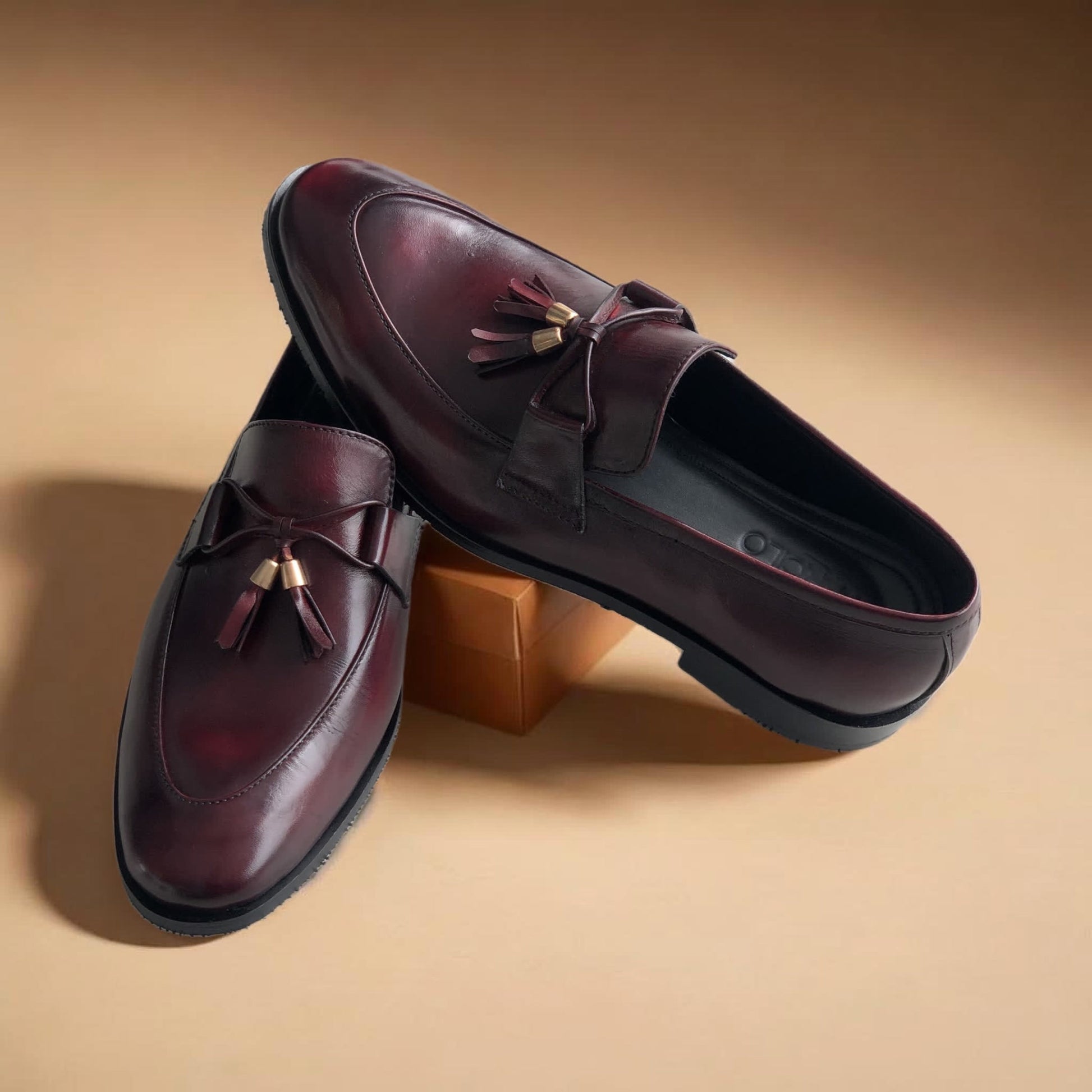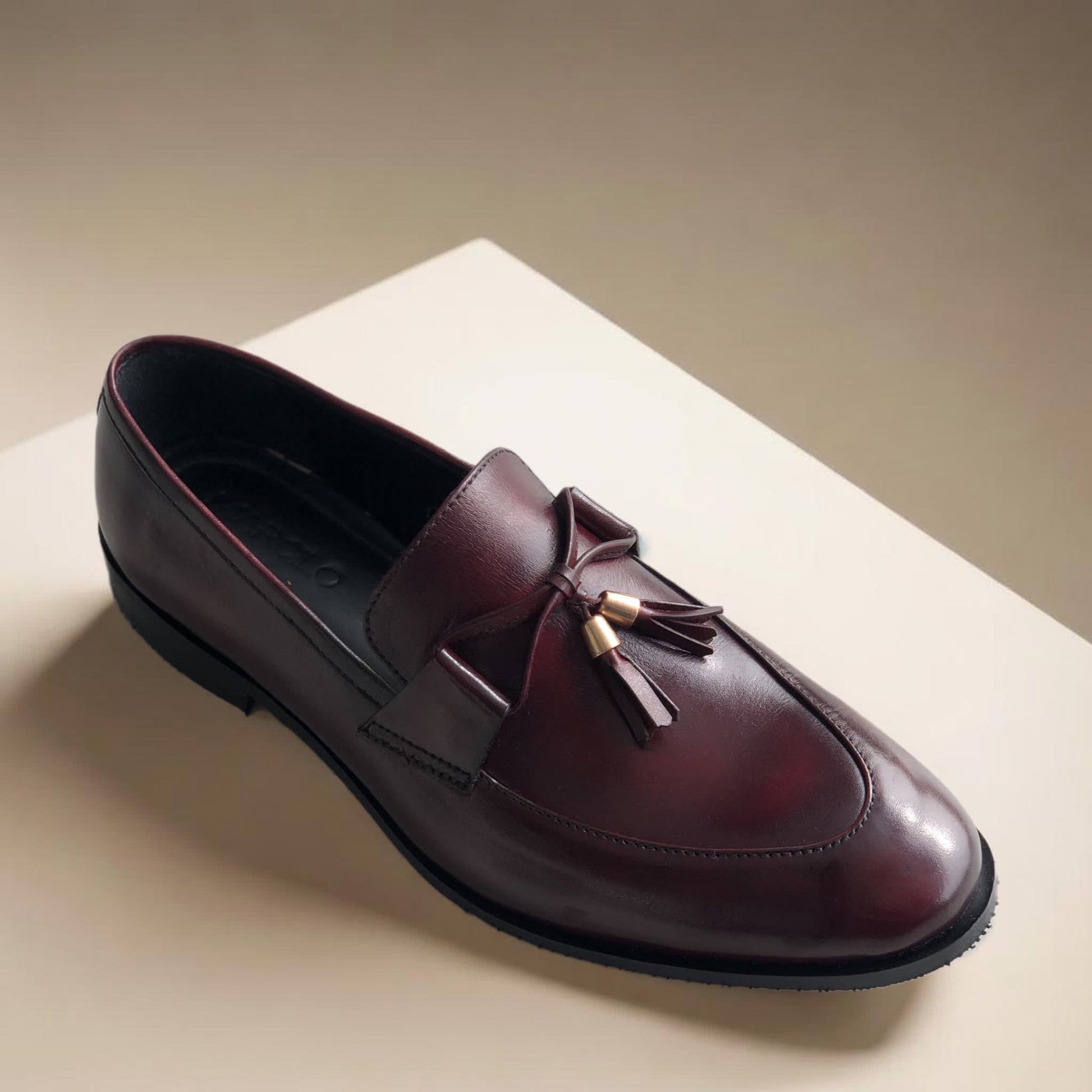 Look no further than our Burgundy Shaded Tassel Loafer With its luxurious Leather exterior and soft calfskin lining, this loafer is the perfect blend of fashion and function. But that's not all, read on to discover even more reasons why this shoe is a must-have for your wardrobe."