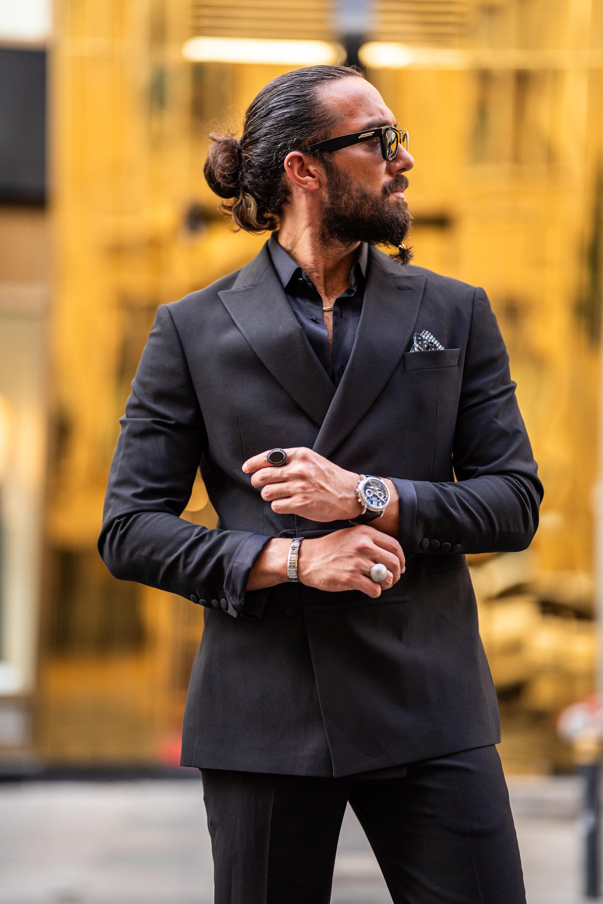 Special Design Mono Collar Suit in Black