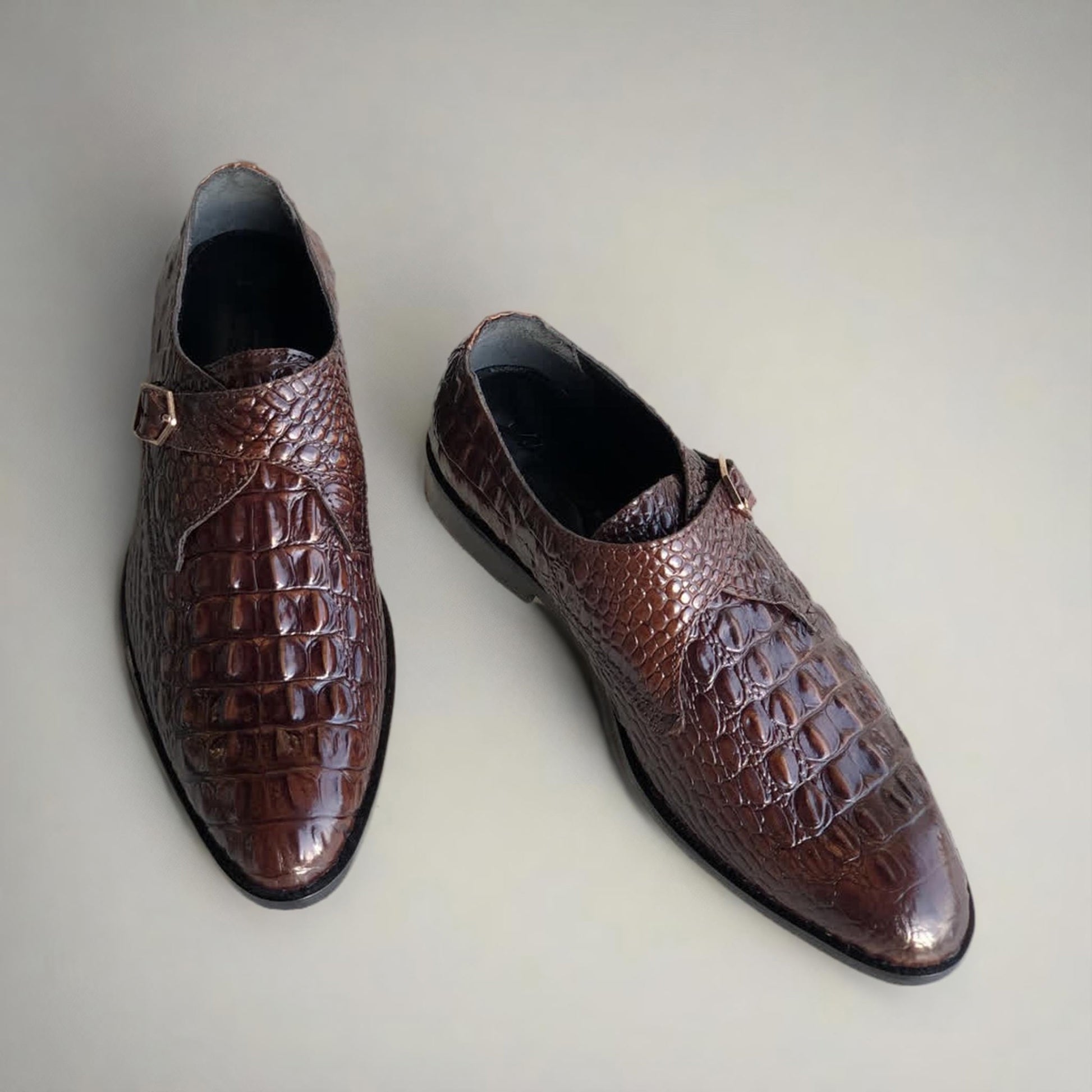 Upgrade your shoe game with our Brown Croc Single Monk Shoes. Made with premium materials and expert craftsmanship, these shoes are a must-have for any fashion-forward individual. Order now and enjoy free delivery all over the World.